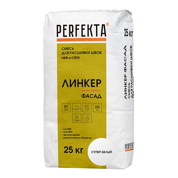 Смесь для расшивки швов НВФ и СФТК Линкер Фасад супер-белый, Perfekta 25 кг